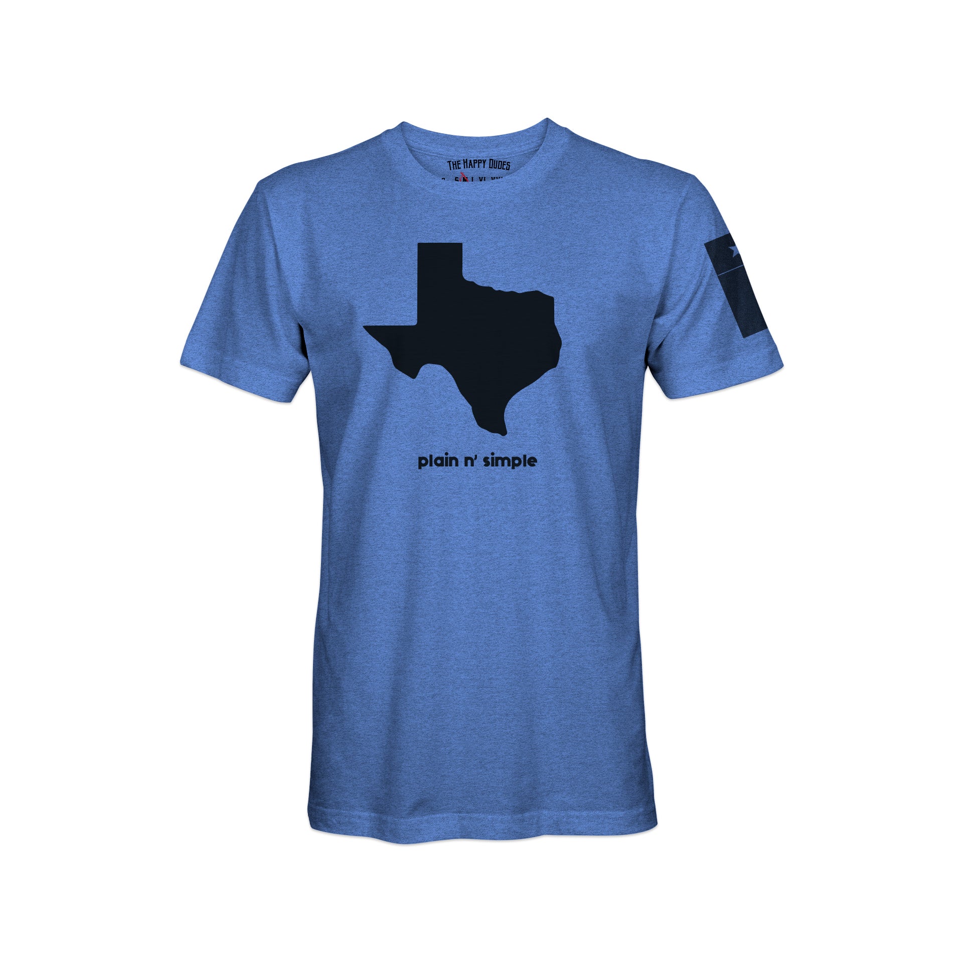 It's Texas. IN SUMMER! Plain n' Simple.     50/50 combed ring-spun cotton/poly blend. Remarkably soft and light weight. (4.3 oz) Fashion fit- slightly slimmer body and shorter sleeves. 75%...